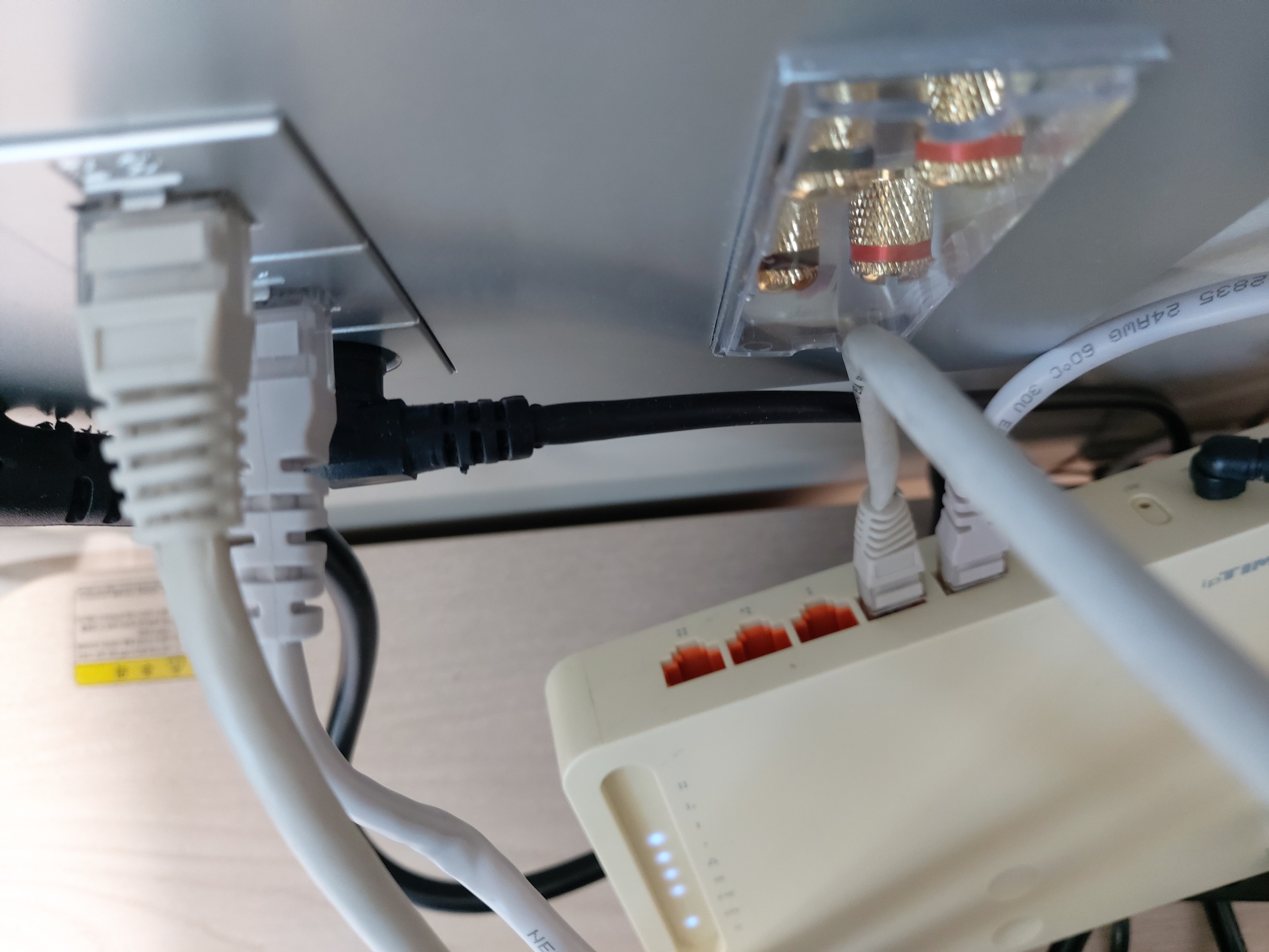 5. 거실벽의 데이터 단자를 사제 유무선공유기의 WAN 단자에 꽂아준다.
